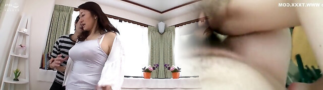 Mature Japanese housewife with big puffies cuckolds her husband