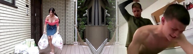 Lustful Japanese Wifey with Big Nipples Licks Neighbor Man's Cock Insanely