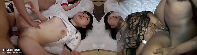 Two Sexy Japanese Honeys Swap Jism After Getting Screwed by Two Men