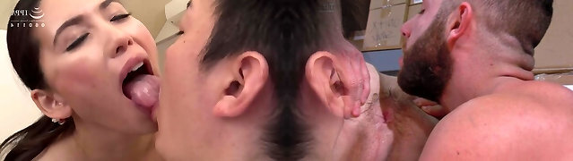 Throatfucked stud licks pussy in a 3 way