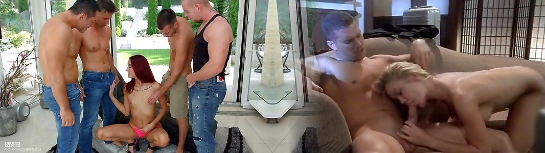 4 mischievous dudes smash crimson haired whore Lien Parker in snatch and mouth