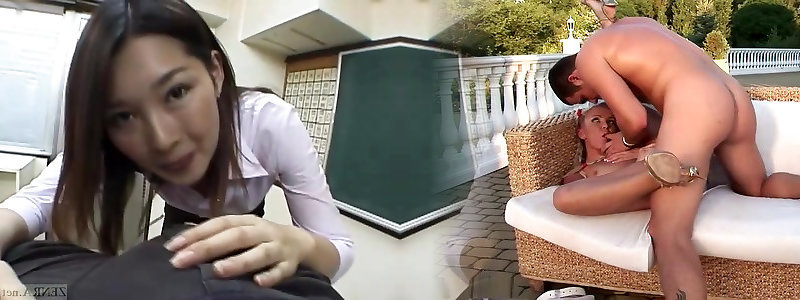 Luxurious Chinese dark-haired Tsubasa Miyashita rides dudes pipe in weird way