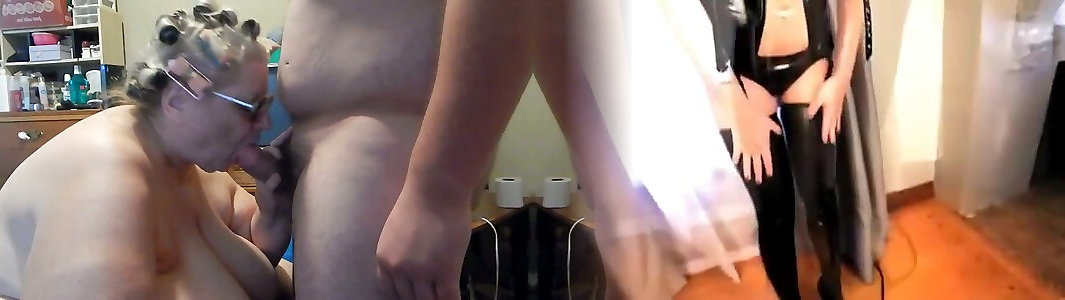 Ginormous perverted platinum-blonde oldie gives Oral Job de morena gets unshaved vulva bashed