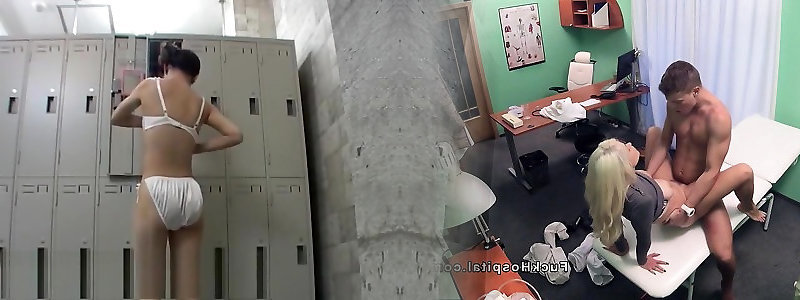 Super-steamy CFNM movie with super-sexy office stunner getting porked in a locker bedroom