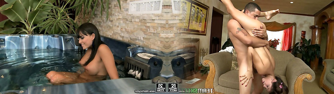 Two big dick studs make seductive brunette Ariana Marie squirt during their passionate session