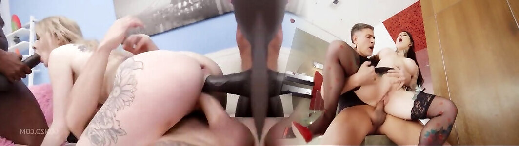 la salope blonde avec des seins de lil a 4 mecs noirs qui partagent ses trous à baiser