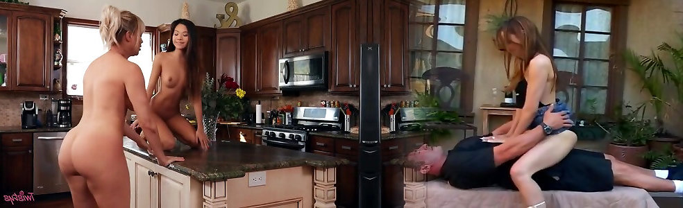 petite ado asiatique faisant plaisir à une milf espiègle dans la cuisine-vina skyy et dana dearmond