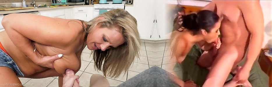 maman mature megan hart donne une pipe boueuse dans la cuisine