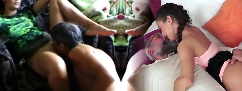 old4k. un fille âgé et une petite amie aux cheveux noirs ont une séance de baise sensibilisée
