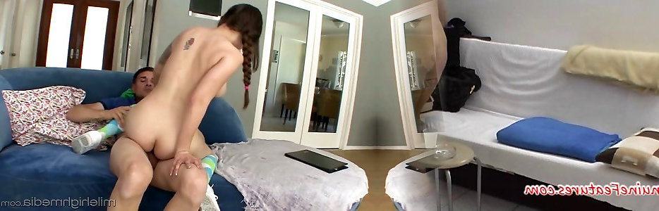 bonny brunette teenie avec des queues de poney chevauche épaisse bite de son play pussy porn avec zèle