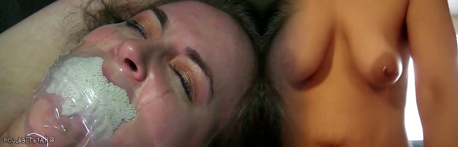 poupée attachée sur un lit dacier termine avec un masseur sur sa chatte rasée