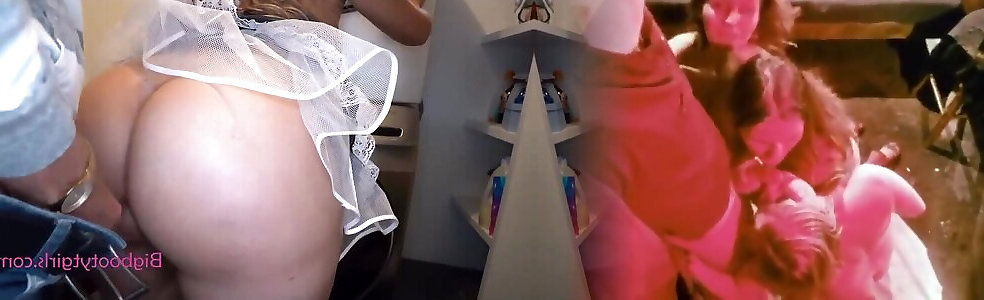 she-male dans les bottes de fausse bite dans le trou du cul
